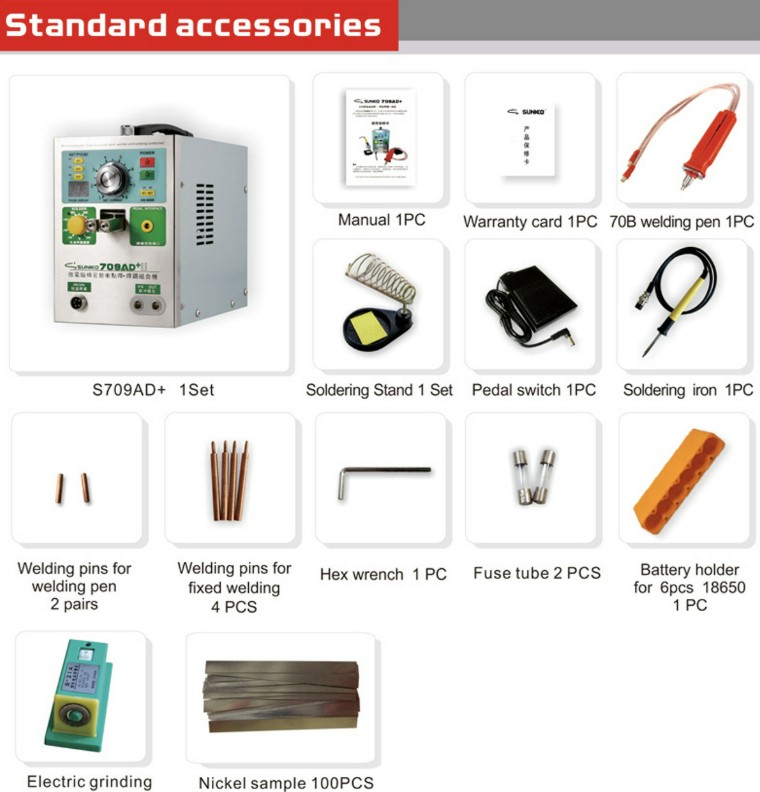 Equipo soldador de punto para ensamble de baterías SUNKKO 709AD+