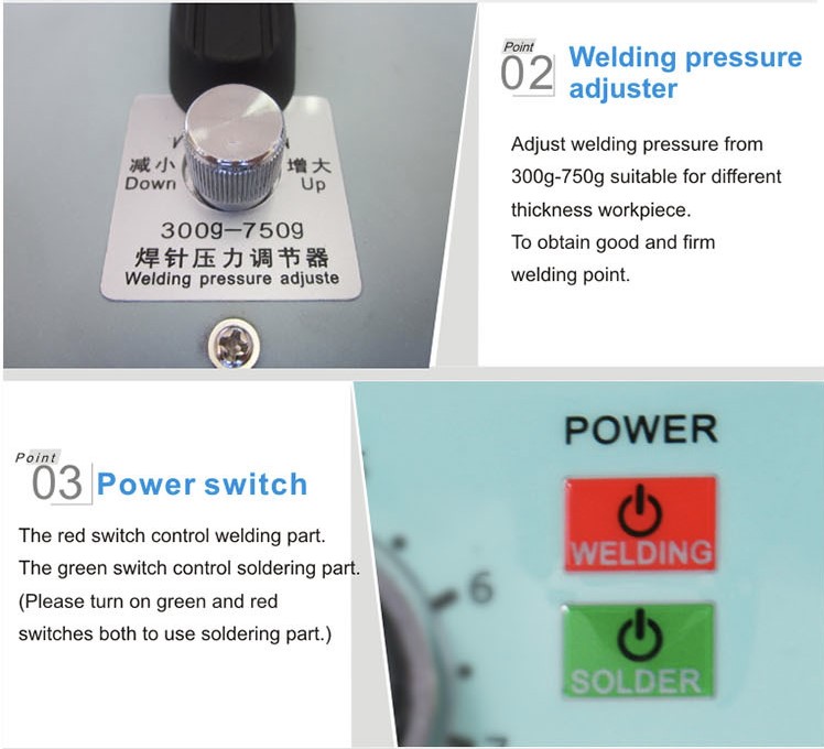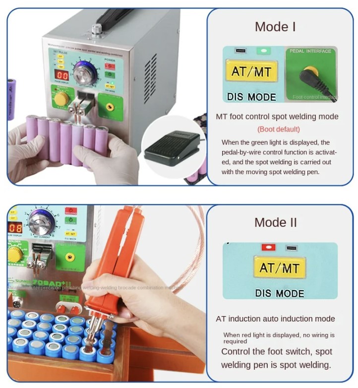 - La máquina combina la soldadura por puntos de batería con la soldadura de placas de circuito, lo que facilita su trabajo.