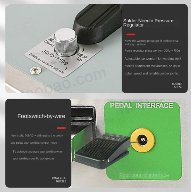 - Pedal externo para una soldadura por puntos precisa.