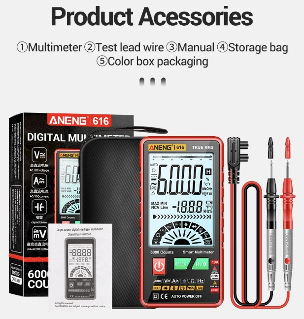 Sé el primero en valorar “MULTIMETRO DIGITAL AUTORANGO / ANENG 616”