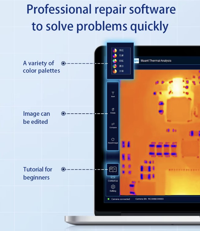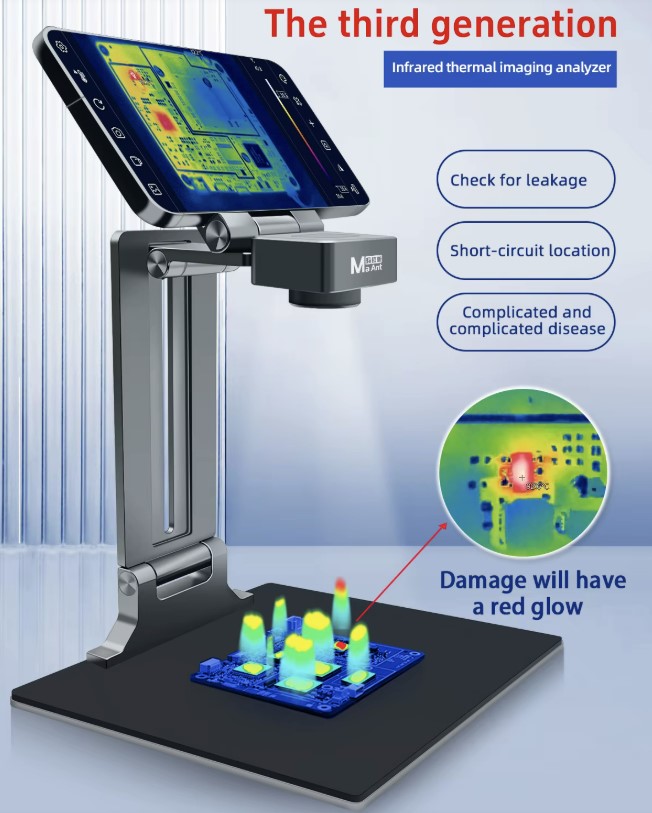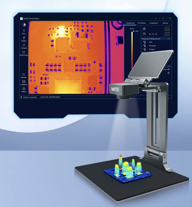 Cámara de análisis de imágenes térmicas infrarrojas Maant RC3 para diagnóstico de cortocircuito de PCB.