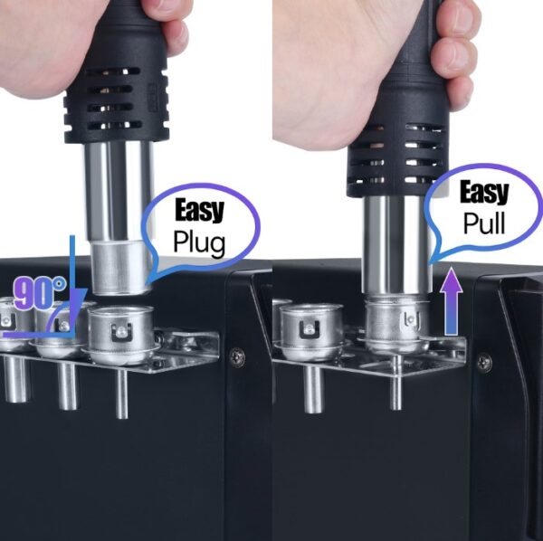 Nuevo Soporte mejorado, almacenamiento y boquilla de separación]La boquilla de aire de la pistola de aire se puede reemplazar y desmontar rápidamente, no es necesario esperar a que la boquilla se enfríe.