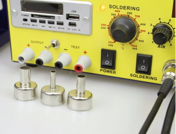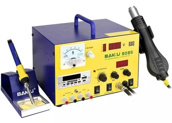 Estación de soldadura 4 en 1 BK 909 S aire caliente, cautín, radio con mp3 y fuente regulada