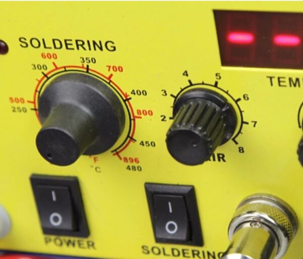 Temperatura de aire caliente regulable desde 160°C hasta 480 °C (visualización display LED)