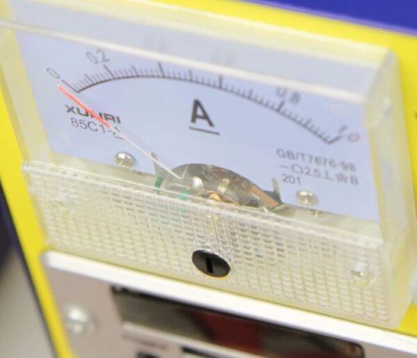 Sección fuente: Fuente regulada variable de 0 a 15 VDC / 1 Amperio (visualización VU)